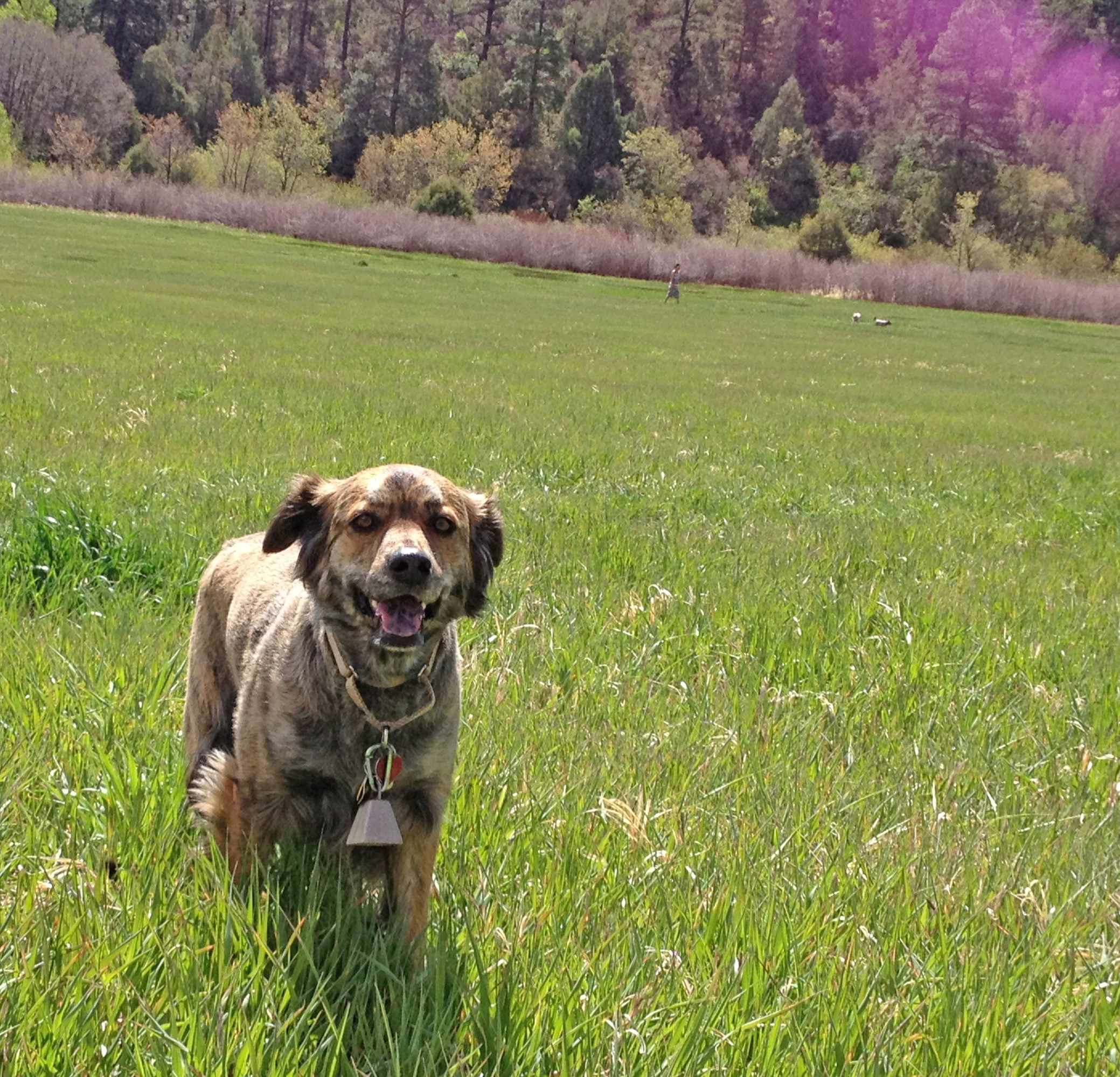 Approximately 4 years ago I was called in to help with a houseful of dogs who had been living in a single-wide trailer with an older man. The man had passed away and the 25 or so dogs that lived in the house with him were feral. We were only able to catch 10 or so, the rest were so scared of humans that they wouldn’t let anyone come near them. After a week of unsuccessful trapping we turned the case back over to local authorities. But one of the girls I had worked with had really taken a liking to one of the younger dogs; a 7-month-old, brindle-colored, Border Collie mix.