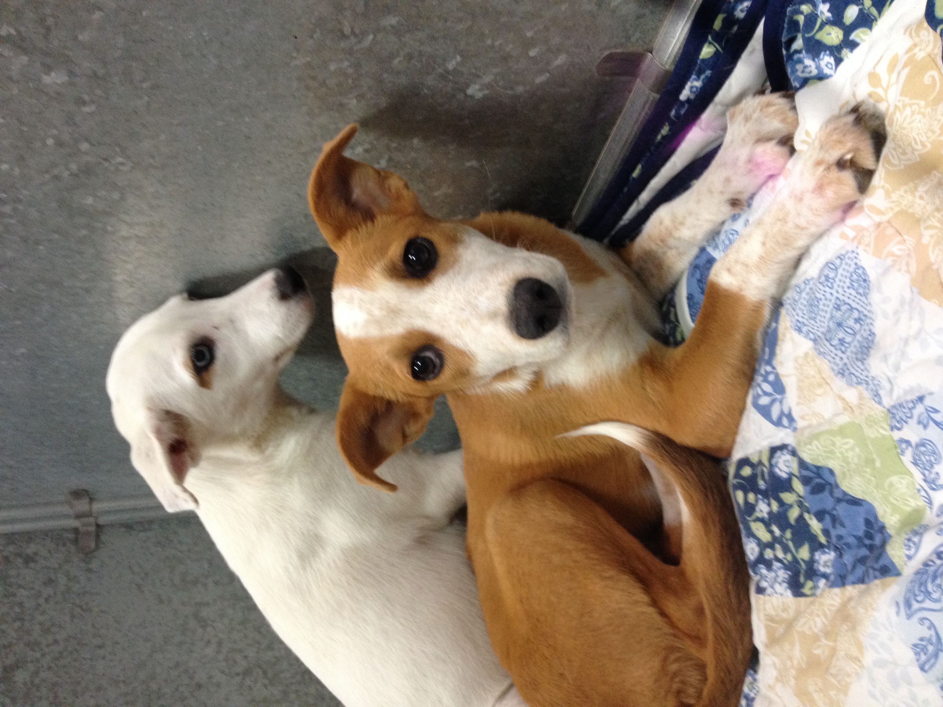 Frankie is a cute, young – 3-month-old, puppy who came from a home with her sister. Neither have had many good interactions with people – as evidenced from their complete fear when we’re around. But it also appears that they haven’t had a lot of good experiences with dogs either.